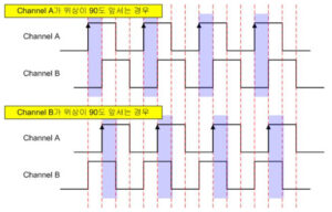 아래는 엔코더에서 나오는 출력파형에 대한 그림입니다.