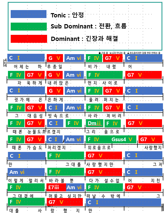 결국 곡 전체는 T–SD–D–T라는 기본 틀 위에서 진행됩니다.