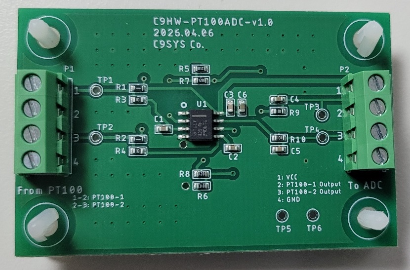 아래는 실제 제작한 C9HW-PT100ADC-v1.0 보드입니다.