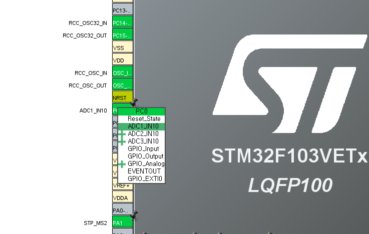 아래는 PC0 핀을 ADC1_IN10으로 설정한 화면입니다.