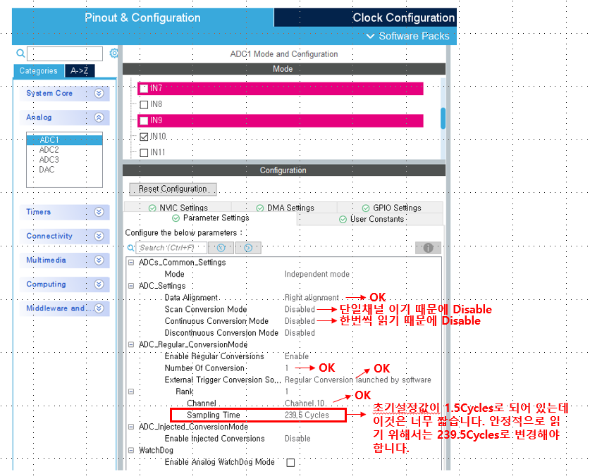 다음으로 할 일은 ADC의 각종 파라미터를 설정하는 것입니다.