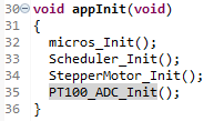초기화 함수인 PT100_ADC_Init()은 appInit() 함수에서 호출하였습니다.