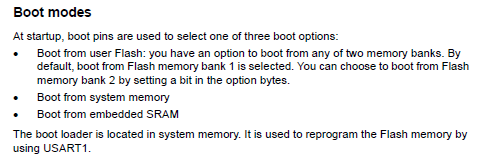 STM32F103의 부트 모드는 아래와 같습니다. 이것은 User Manual에 있는 내용입니다.