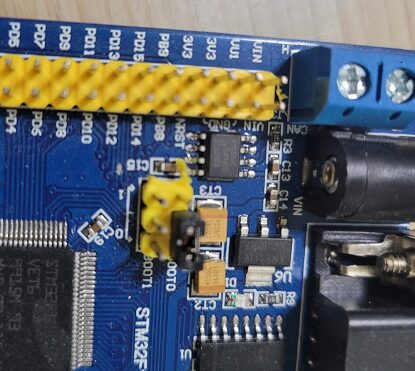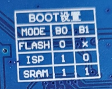 BOOT0, BOOT1 점퍼를 통해 펌웨어 업로드 모드를 물리적으로 설정할 수 있습니다.