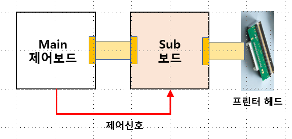 서브보드는 기존 제어보드와 프린터 헤드 사이에 삽입되어,